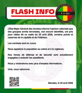 Selon les dernières informations,la situation est sous contrôle des Forces Armées Maliennes. Des ratissages...