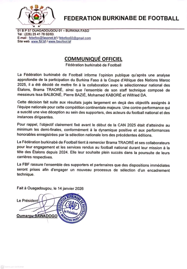 COMMUNIQUÉ DE LA FÉDÉRATION BURKINABÈ DE FOOTBALL (FBF) Partis à cette Coupe d’Afrique des...