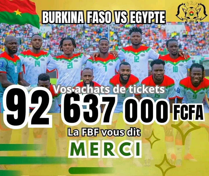 BILLETERIE BURKINA FASO VS EGYPTE Plus de 92 000 000 FCFA de recettes Vos...