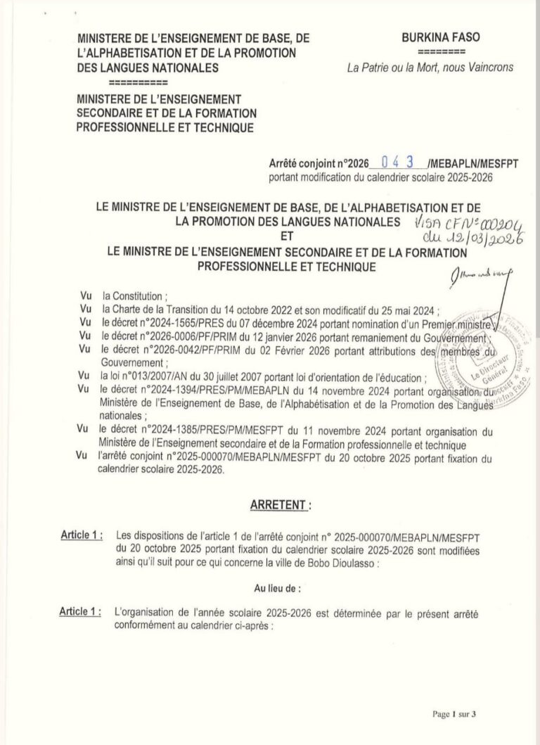 CONSEIL DES MINISTRES DU JEUDI 12 MARS 2026 Le Président du Faso, Chef de...