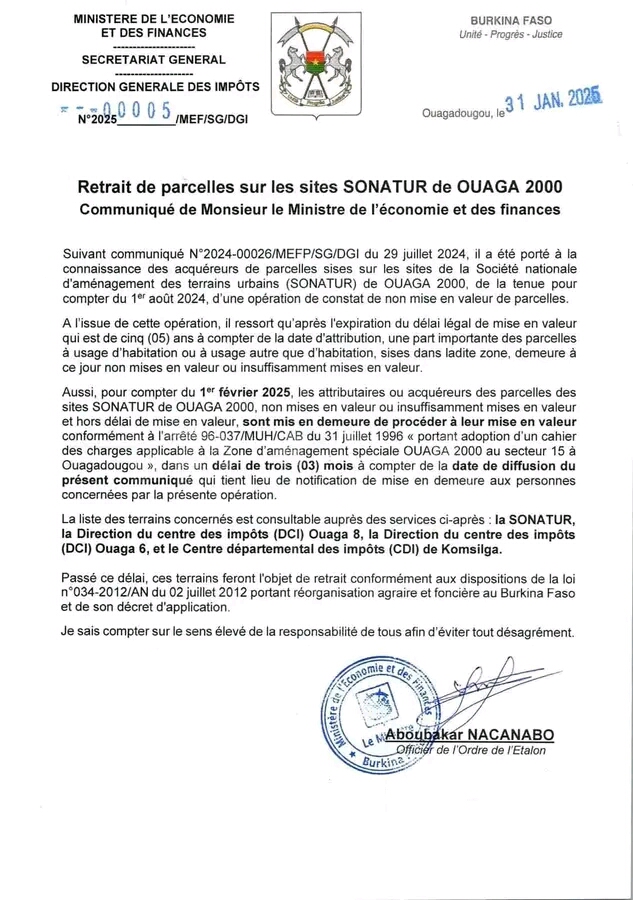 Communiqué de presse Ouagadougou, le 8 février 2025 Suite à un incident survenu au...