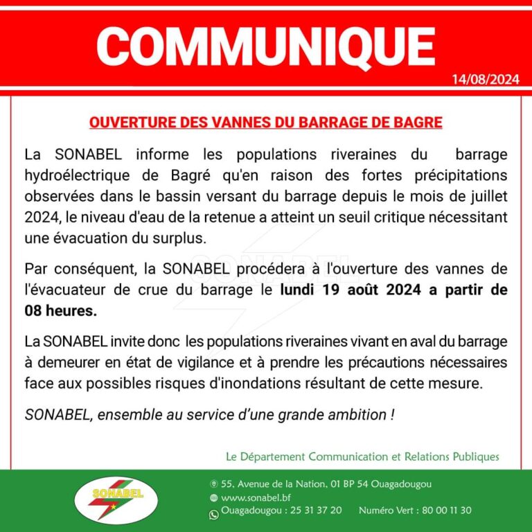 Ouverture des vannes du barrage de Bagré