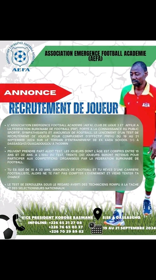 Recrutement de jeunes talents à l’AEFA. Hâtez vous, le nombre de places est limité...