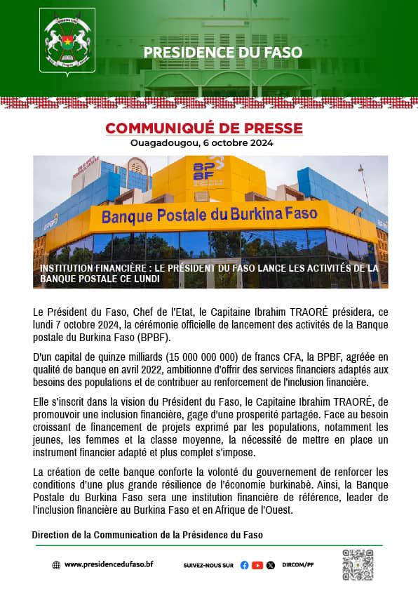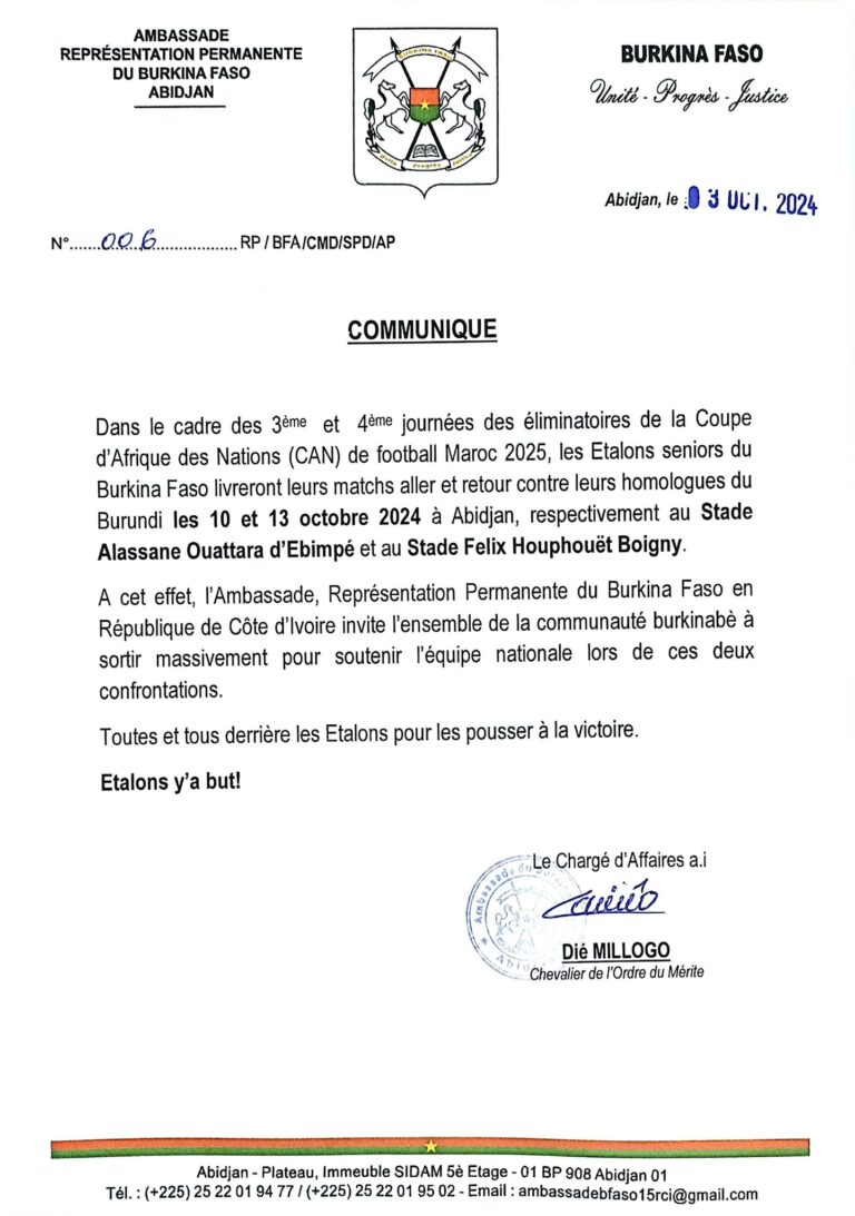Le Président du Faso, Chef de l’Etat, le Capitaine Ibrahim TRAORE présidera, ce lundi...