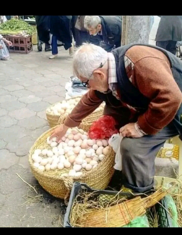 Une dame demande : « Combien vendez-vous vos œufs ?» Le vieux vendeur répond...