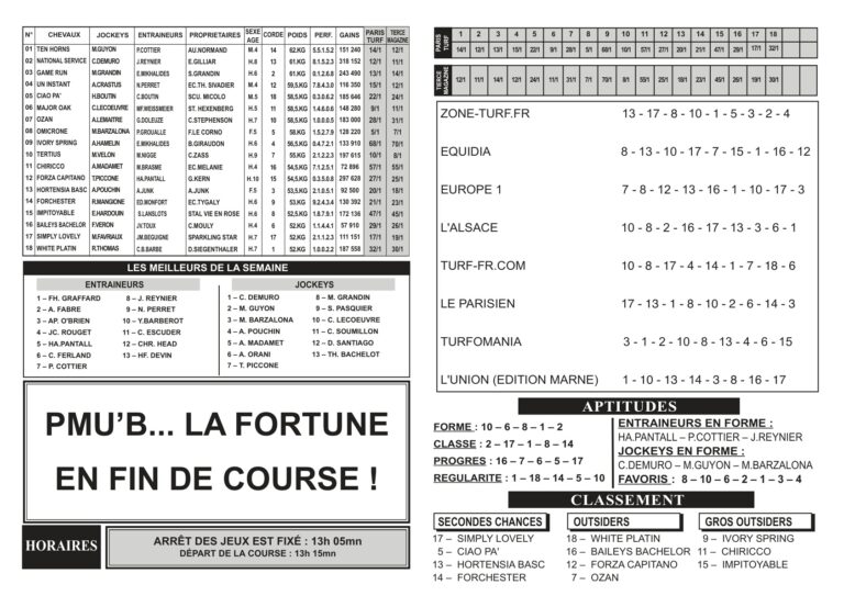 Les 6 chevaux de Reveil-info : 1-17-13-10-5-18