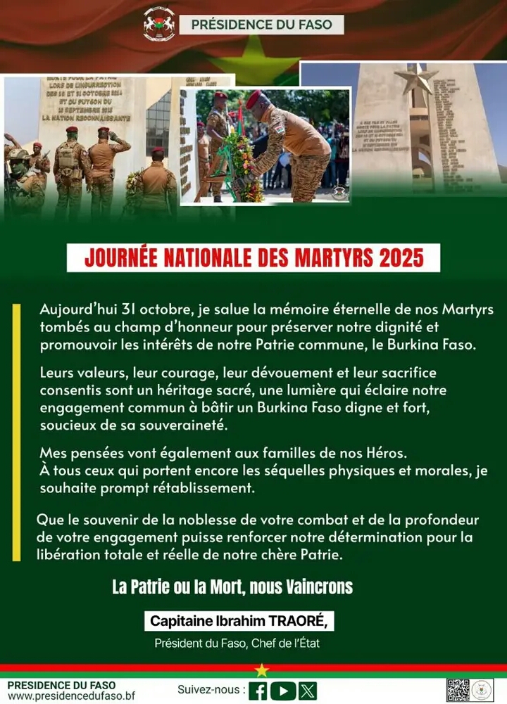 JOURNÉE NATIONALE DES MARTYRS 2025 : le message de Son Excellence le Capitaine Ibrahim...