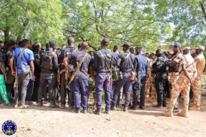 Du 08 au 28 octobre 2024, le Directeur Général de la Police Nationale (DGPN), l’Inspecteur Général de Police Wennélebsida Jean Alexandre DARGA, accompagné de certains de ses proches collaborateurs, notamment le Directeur des Unités d’Intervention (DUI), le Directeur du Matériel et du Budget (DMB) et le Directeur de la Communication et des Relations Publiques (DCRP), étaient en tournée dans les treize (13) régions du Burkina Faso. La délégation a aussi été à Douroula sur la ligne de front aux côtés des hommes du 8ème Groupement Mobile d’Intervention (GUMI