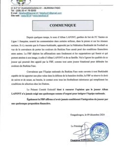 Sports et Culture Affaire binationaux : la FBF communique Réveil info 9 décembre 2024 Continue Reading Previous Previous post: Nigéria : le Chef d’État-Major dément les rumeurs d’établissement d’une base militaire étrangère et réaffirme sa souverainetéNext Next post: Lu pour vous- affaire de détournement plus de 3 milliards: quand Tiegnan révèle la puanteur de l’administration publique Laisser un commentaire Annuler la réponseVotre adresse e-mail ne sera pas publiée. Les champs obligatoires sont indiqués avec *Commentaire * Nom * E-mail * Site web Enregistrer mon nom, mon e-mail et mon site dans le navigateur pour mon prochain commentaire. Articles connexes Cyclisme : le grand prix cycliste RTB s’ouvre aux pays de l’AES 5 février 2026 Grand prix cycliste RTB: la RTB chez le Mogho Naaba 3 février 2026
