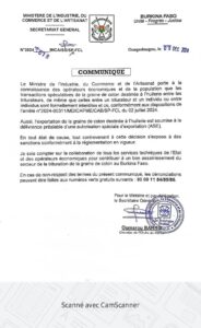 Annonces-Communiqués Interdiction des transactions spéculatives de la graine de coton destinée à l’huilerie Réveil info 10 décembre 2024 Continue Reading Previous Previous post: EAU POTABLE DANS LE SAHEL: LA PARTITION DE LA CROIX-ROUGE BURKINABENext Next post: PAROLES DE COACH :UN VRAI AMI MARCHE À VOS CÔTÉS MÊME QUAND LE CHEMIN EST ACCIDENTÉ … Laisser un commentaire Annuler la réponseVotre adresse e-mail ne sera pas publiée. Les champs obligatoires sont indiqués avec *Commentaire * Nom * E-mail * Site web Enregistrer mon nom, mon e-mail et mon site dans le navigateur pour mon prochain commentaire. Articles connexes FBF: communiqué sur le recrutement d’un nouveau sélectionneur des Étalons 6 février 2026 Recrutement pour FASO MEBO : les résultats 5 février 2026