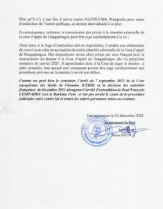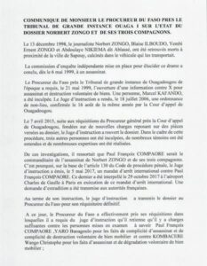 Actualité Etat du Dossier Norbert Zongo: le communiqué du Procureur… Réveil info 12 décembre 2024 Continue Reading Previous Previous post: Le ministre en charge de la Défense exhorte les Burkinabè à l’union pour combattre l’adversité extérieureNext Next post: Dossier Norbert Zongo: conférence publique ce 13 décembre 2024 Laisser un commentaire Annuler la réponseVotre adresse e-mail ne sera pas publiée. Les champs obligatoires sont indiqués avec *Commentaire * Nom * E-mail * Site web Enregistrer mon nom, mon e-mail et mon site dans le navigateur pour mon prochain commentaire. Articles connexes ISTIC : c’est parti pour les formations 4 février 2026 Accusation de Tiani contre Ouattara : réponse du gouvernement ivoirien 4 février 2026