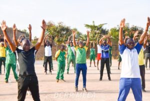 Le personnel du Ministère de l’Environnement, de l’eau et de l’Assainissement a répondu présent à la séance mensuelle d’aérobic, la dernière de l’année 2024, ce jeudi 26 décembre 2024 sur le plateau de la Direction générale des Eaux et Forêts. Durant plus d’une heure d’horloge, le ministre Roger BARO et ses collaborateurs ont effectué des mouvements dans une intense séance au rythme de la musique locale.