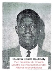 2.Daniel Ouezzin COULIBALY: Vice-Président du Conseil, Ministre de l’information et des Affaires Interterritoriales. Né en 1909 à Pony en Haute-Volta.