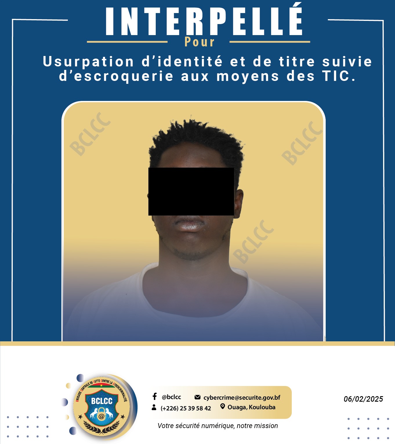 La Brigade Centrale de Lutte Contre la Cybercriminalité (BCLCC) a mis fin aux activités d’un présumé cyber-escroc se faisant passer pour un vendeur en ligne dans le but d’extorquer de l’argent à ses victimes. Il s’agit de Y.C, un Burkinabè de 23 ans, employé de commerce et résidant à Ouagadougou, spécialisé dans l’escroquerie via les Technologies de l’Information et de la Communication (TIC).