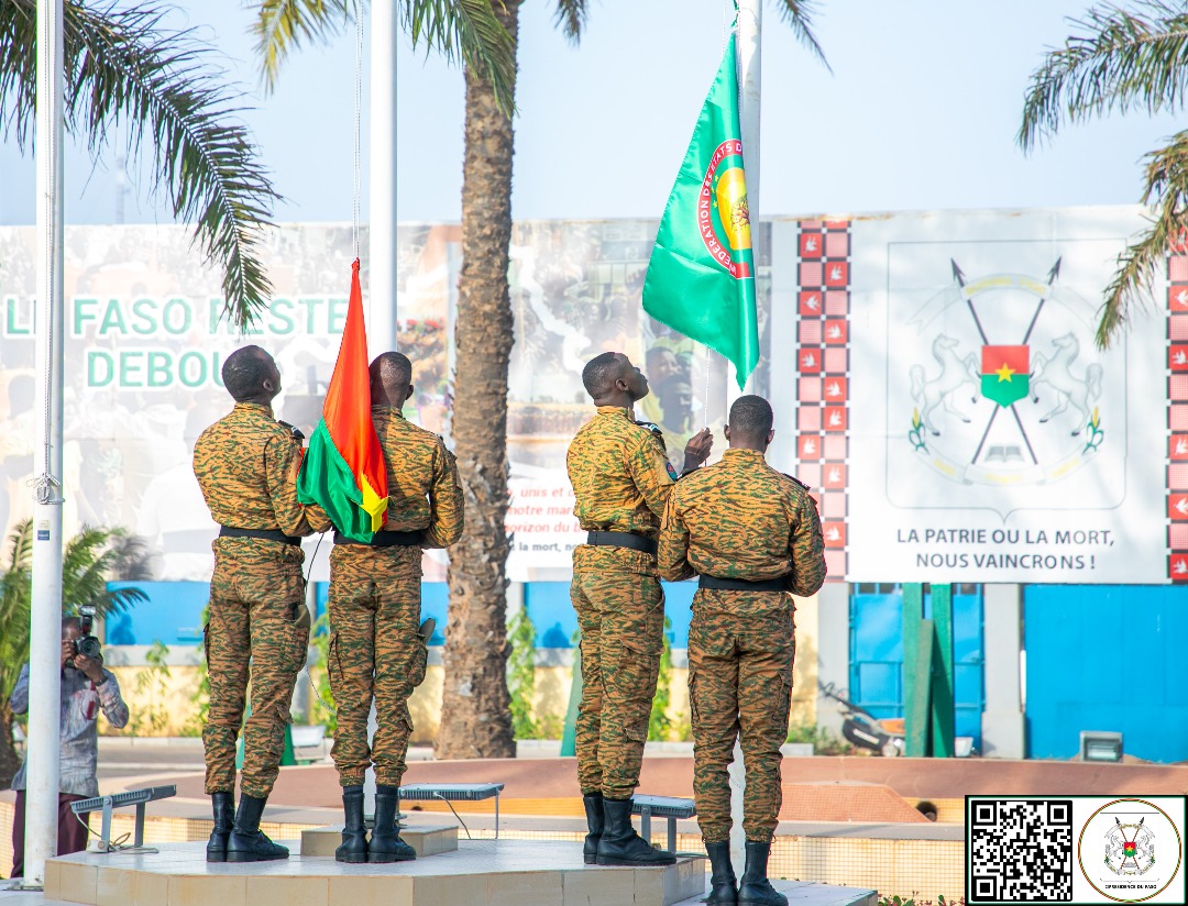 Cérémonie de montée des couleurs à la Présidence du Faso : le drapeau de la Confédération des États du Sahel flotte désormais au palais présidentiel de Koulouba