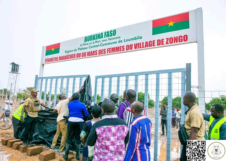 (Loumbila, 1er mai 2025). Le Directeur de cabinet du Président du Faso, le Capitaine Martha Céleste Anderson Dekomwin MEDAH a procédé, ce jeudi à la réception officielle des travaux d’aménagement du site maraîcher du 8-Mars des femmes du village de Zongo, dans la commune de Loumbila, région du Plateau-Central.