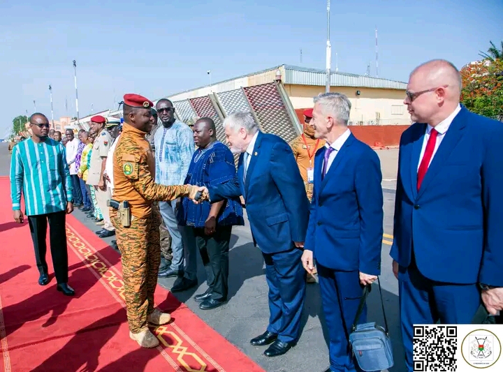 Honneurs militaires sur le tarmac de l’aéroport international de Ouagadougou et pour l’accueil, les corps constitués avec à leur tête Son Excellence Monsieur le Premier Ministre. L’Ambassadeur de Russie à Ouagadougou et ses proches collaborateurs étaient également de la partie.