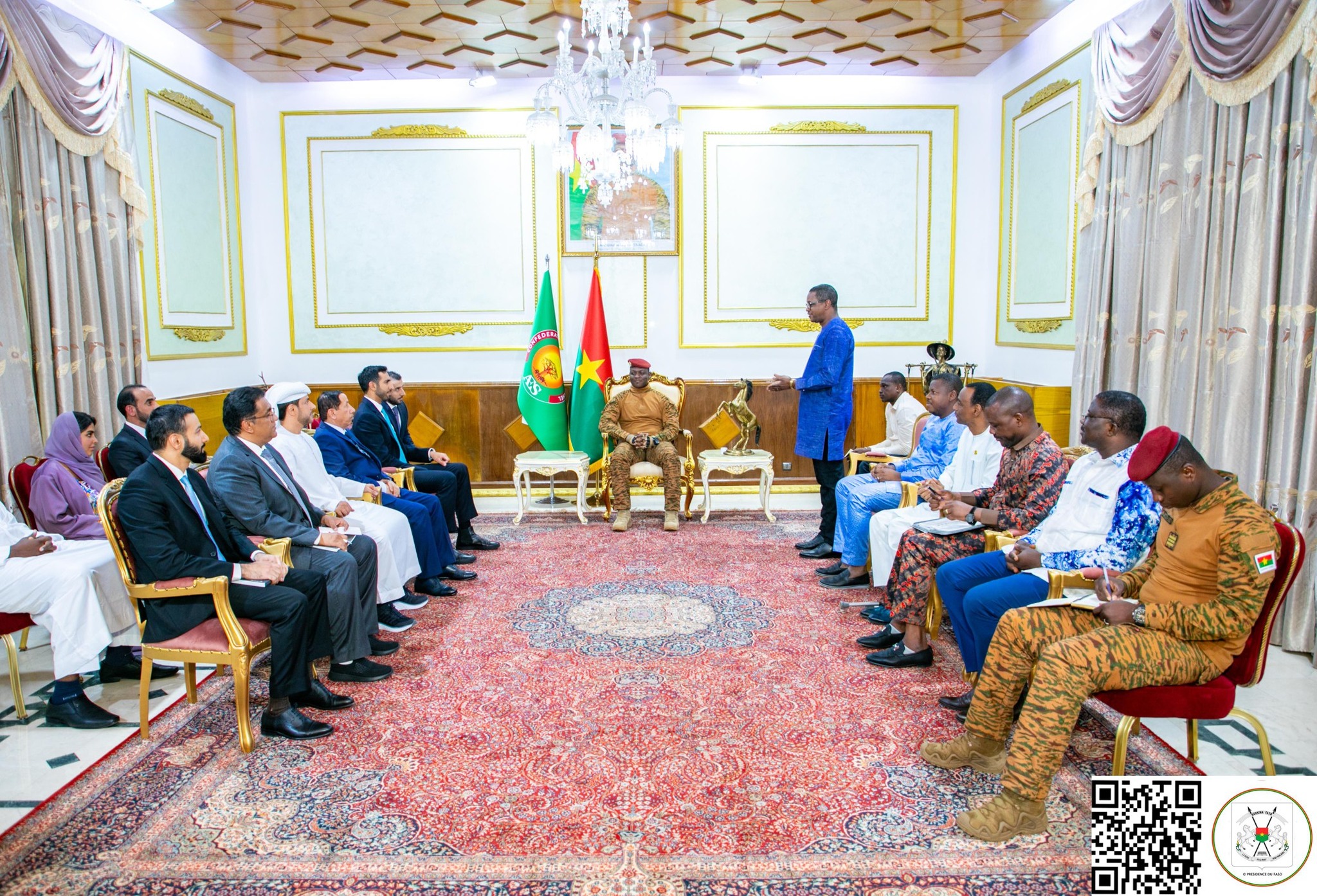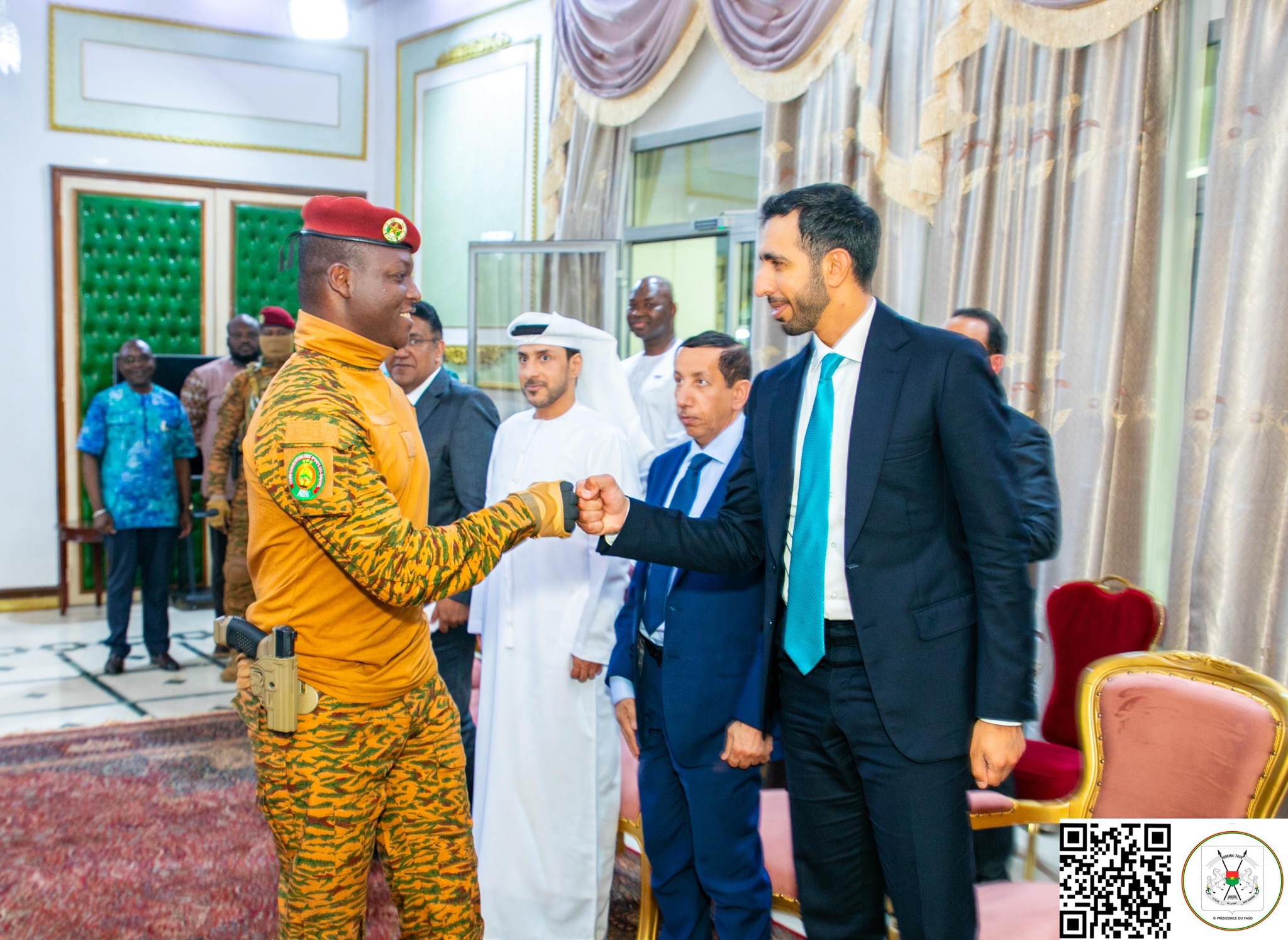 Avec le Capitaine Ibrahim TRAORÉ, l’émissaire du Président Mohammed ben ZAYED a examiné les voies et moyens pour le renforcement des relations de coopération économique entre le Burkina Faso et les Emirats arabes unis.