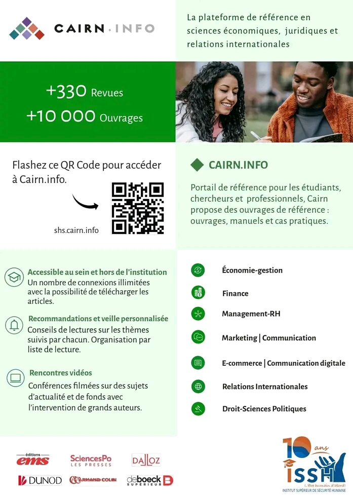 L’Institut Supérieur de Sécurité Humaine (ISSH) a le plaisir d’annoncer un nouveau partenariat stratégique avec Cairn.info, une référence incontournable dans la diffusion du savoir scientifique en langue française.