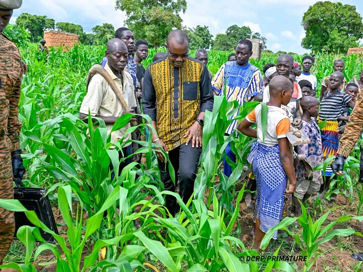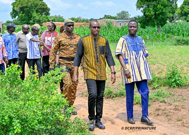 De retour de Gaoua, le Premier ministre, Rimtalba Jean Emmanuel Ouédraogo, a marqué une halte dans un champ familial afin d’encourager les producteurs.