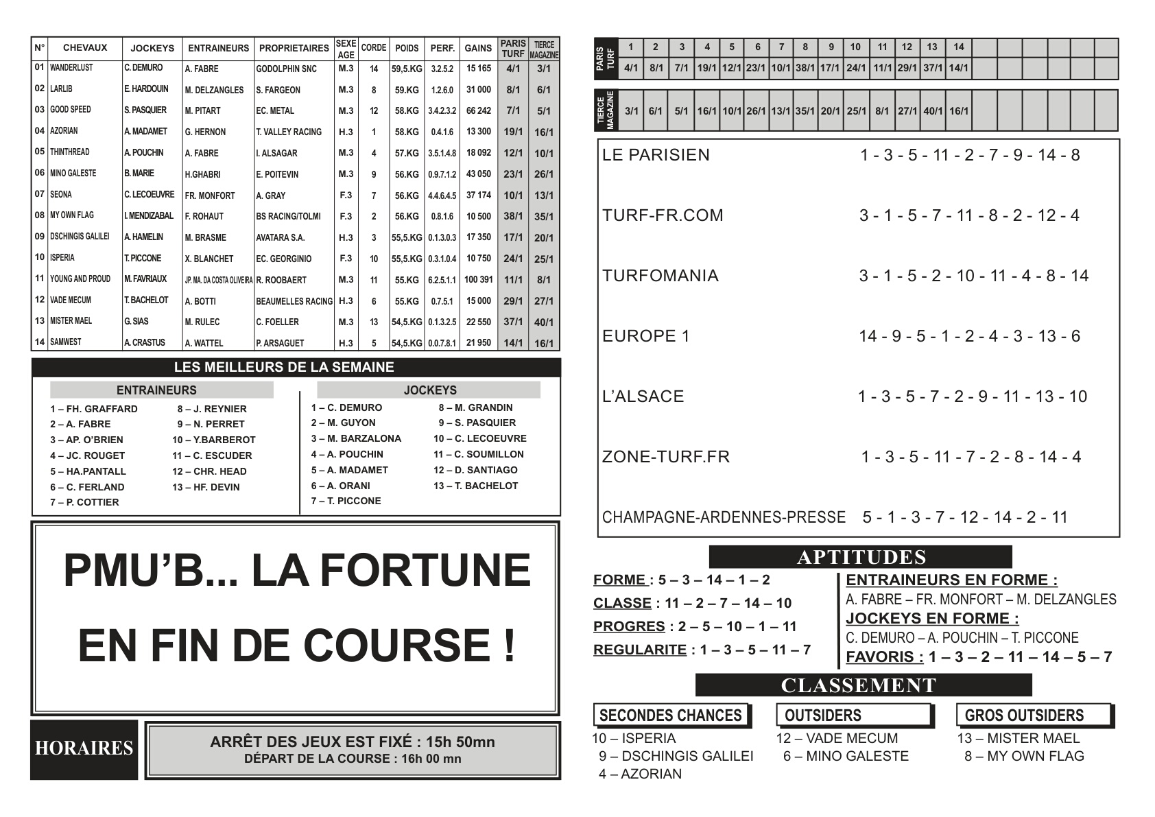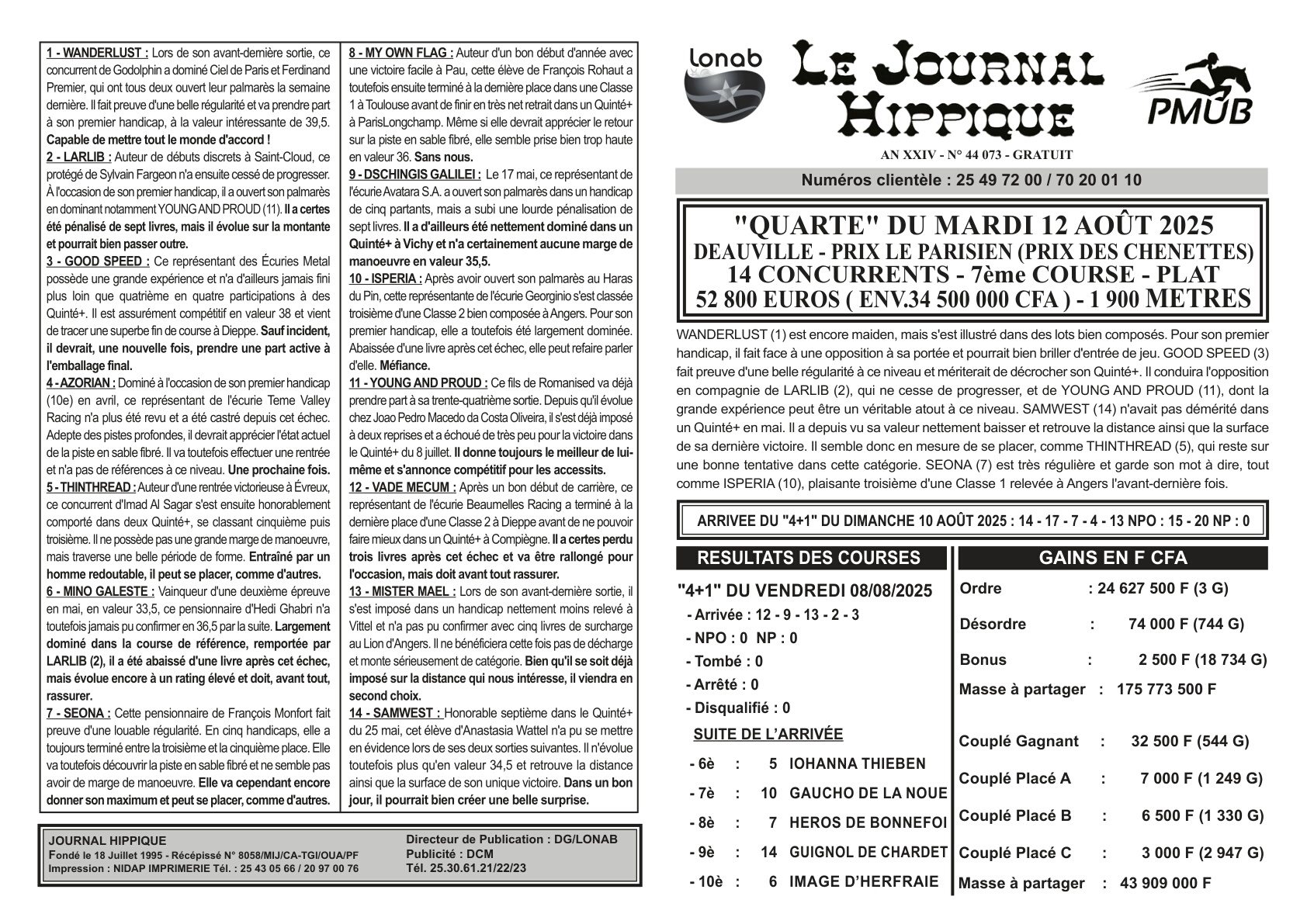 La page du PMUB PMUB : Quarté Plat de ce mardi 12 août – Pronostics de la presse,programme Réveil info 12 août 2025 Les 6 chevaux de Reveil-info : 14-3-1-9-11-5 Continue Reading Previous Previous post: Lutte contre la fraude: deux individus aux arrets et des produits saisis par la gendarmerie de MoussodougouNext Next post: Lu pour vous- Manger en groupe: un sens profond Laisser un commentaire Annuler la réponseVotre adresse e-mail ne sera pas publiée. Les champs obligatoires sont indiqués avec *Commentaire * Nom * E-mail * Site web Enregistrer mon nom, mon e-mail et mon site dans le navigateur pour mon prochain commentaire. Articles connexes PMUB: programme et pronostics du mercredi 20 août – Quinté 4+1 19 août 2025 PMUB: résultat et gains de ce 19 Août 19 août 2025