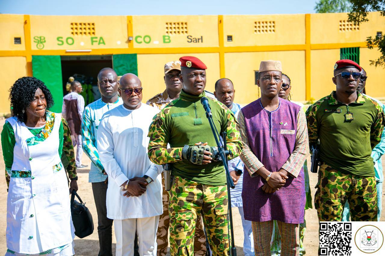 (Ouagadougou, le 17 octobre 2025). Le Président du Faso, Chef de l’État, le Capitaine Ibrahim TRAORÉ a visité, ce vendredi matin, la Société de Fabrication de Coton Burkinabè (SO.FA.CO-B) située dans la commune de Pabré. Il s’est agi pour le Chef de l’État d’encourager et de féliciter la promotrice de la SO.FA.CO-B, Dr Céline KONTYARÉ/KOBEANÉ.