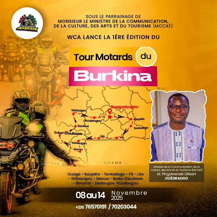 Annonces-Communiqués Tour motards Burkina 2025: promouvoir le tourisme Réveil info 3 novembre 2025 Continue Reading Previous Previous post: FASO MEBO- Koudougou : le chef de canton de Lallé mise plus de 3 millions FCFANext Next post: Présidence du Faso : l’ancien président Sud-africain Jacob Zuma chez IB Laisser un commentaire Annuler la réponseVotre adresse e-mail ne sera pas publiée. Les champs obligatoires sont indiqués avec *Commentaire * Nom * E-mail * Site web Enregistrer mon nom, mon e-mail et mon site dans le navigateur pour mon prochain commentaire. Articles connexes FASO MEBO- Bilan contributions par région : plus de 45 millions pour le Kadiogo 1 février 2026 Dissolution des partis politiques : Réaction de l’ex -CDP 31 janvier 2026