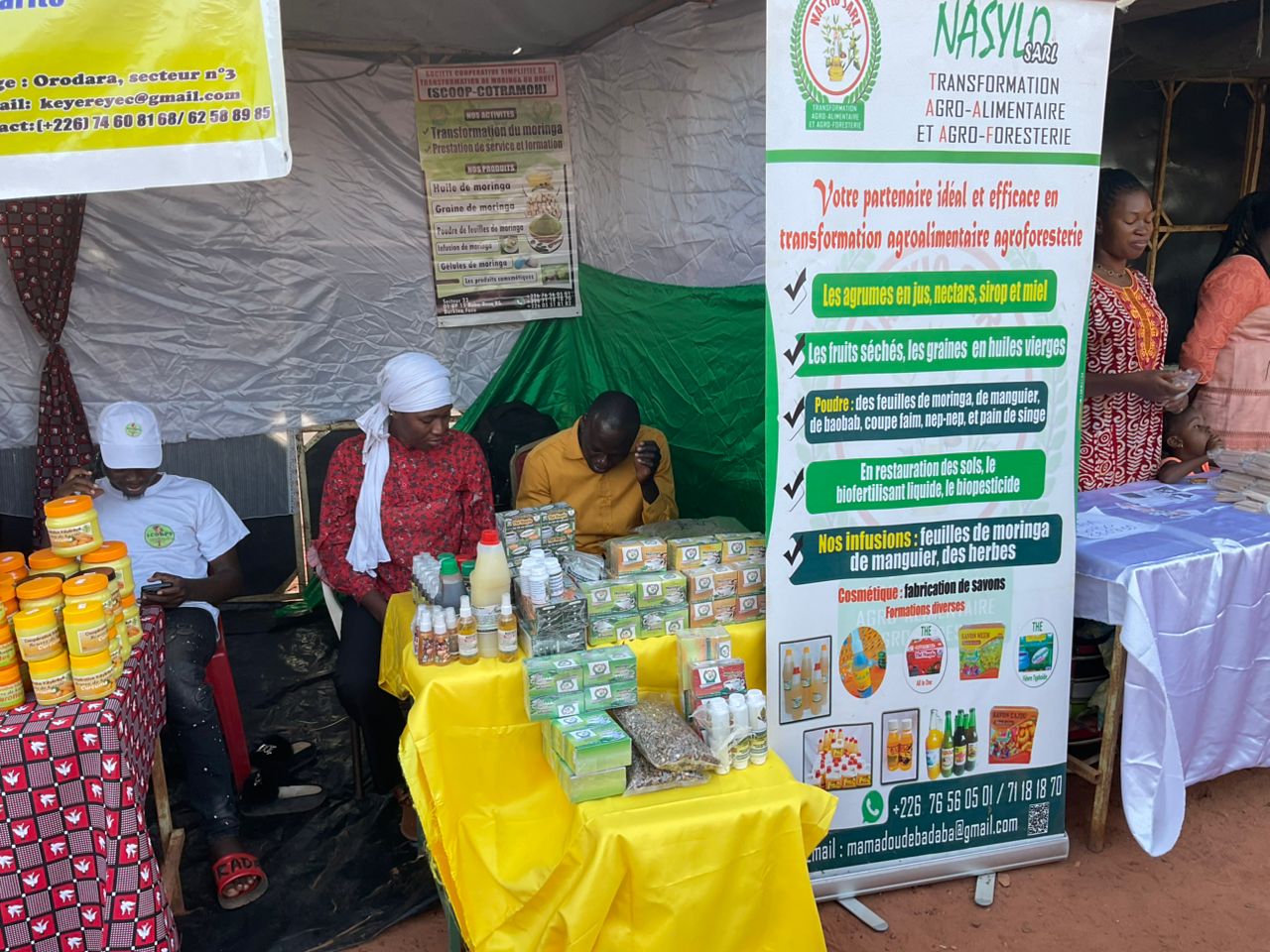 En effet, spécialisé dans la transformation agroalimentaire des produits naturels et dérivés du moringa, l’entreprise NASYLO SARL a activement pris part à cette foire à travers l’exposition- stand. Au niveau de son stand il y avait une diversité de produits notamment les huiles vierges de moringa, les infusions naturelles, les gélules, et autres dérivés.
