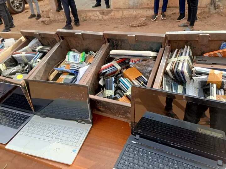 Selon le chef du service régional de la police judiciaire du Kadiogo, Josué Zabsonré, l’enquête a permis de saisir un fusil Kalachnikov et son chargeur garni de 16 munitions, un pistolet automatique de calibre 7.65 volé dans les mêmes conditions, un paquetage militaire complet et plus de 220 téléphones portables.