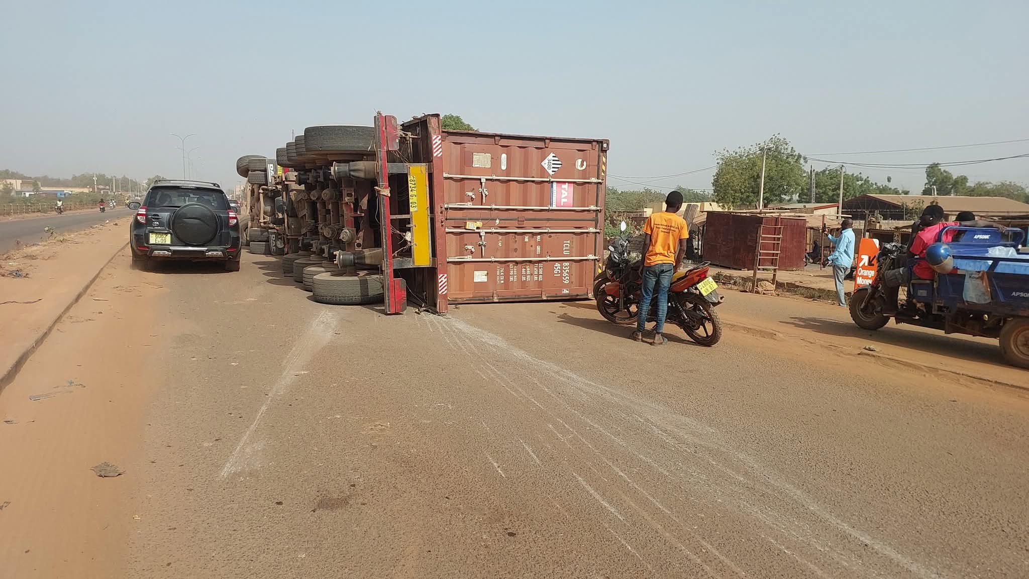 Ouagadougou : Un véhicule-remorque s’est renversé dans la nuit du 14 au 15 janvier 2026, sur la Route nationale 5, précisément devant le CSPS de Lanoayiri, sur le pont situé entre la Trame d’accueil et Balkuy.