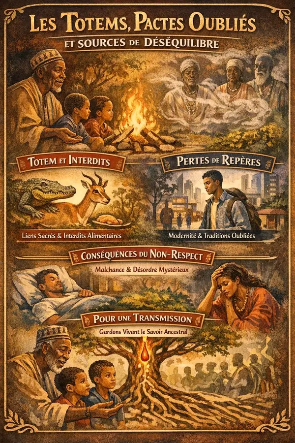 Dans notre vision traditionnelle, le non-respect des totems peut provoquer des désordres mystérieux, parfois perçus comme des maladies incompréhensibles ou des situations de malchance répétées. Même si l’on change de religion ou que l’on adopte de nouvelles pratiques modernes, le sang reste porteur de l’histoire et des pactes ancestraux. Nos liens socio-culturels ne disparaissent pas, et la négligence de ces repères peut avoir un impact invisible mais réel sur la vie de l’individu et de sa descendance.