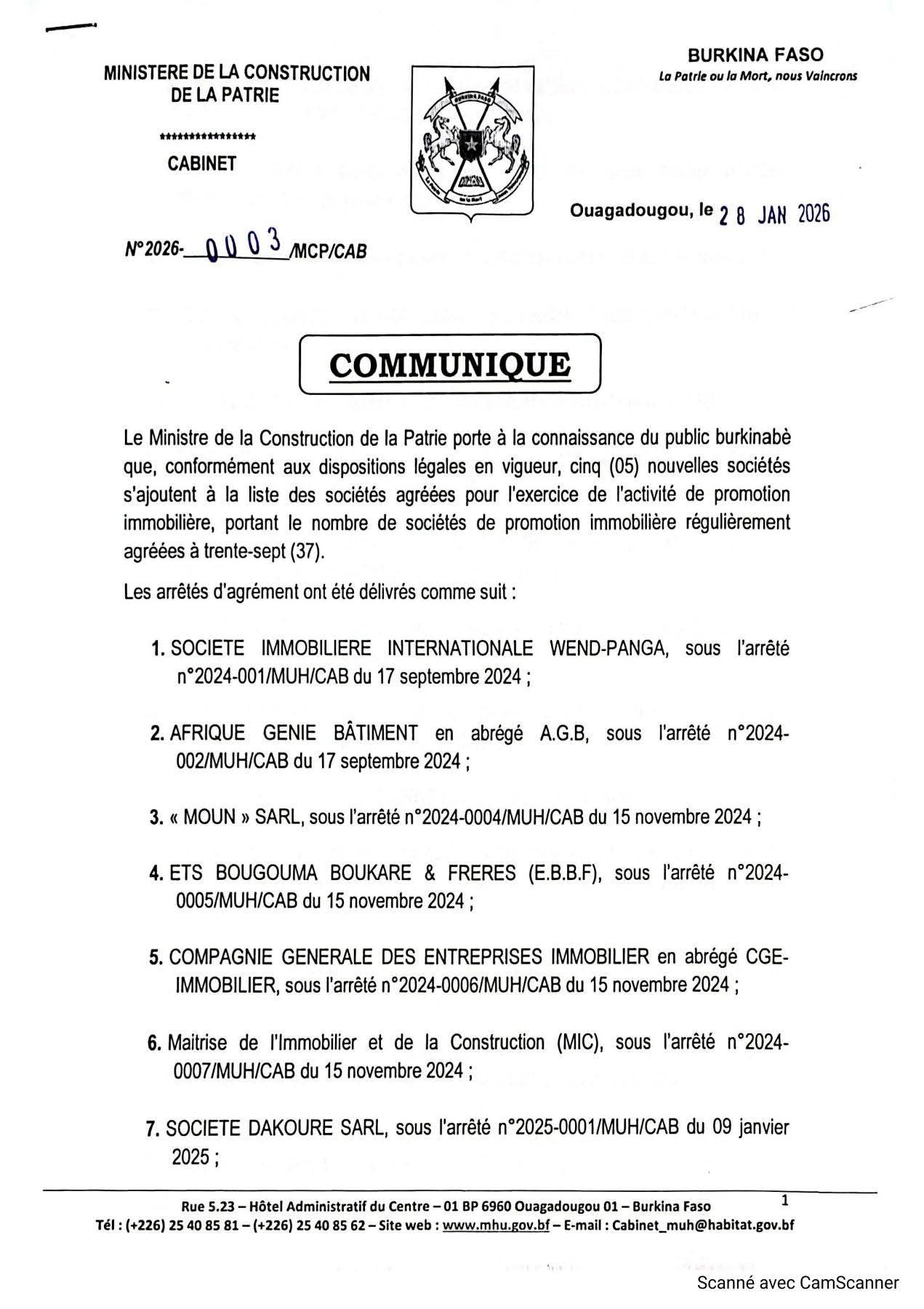Trois (03) nouvelles sociétés( n°33 au n°35) ont obtenu leur agrément