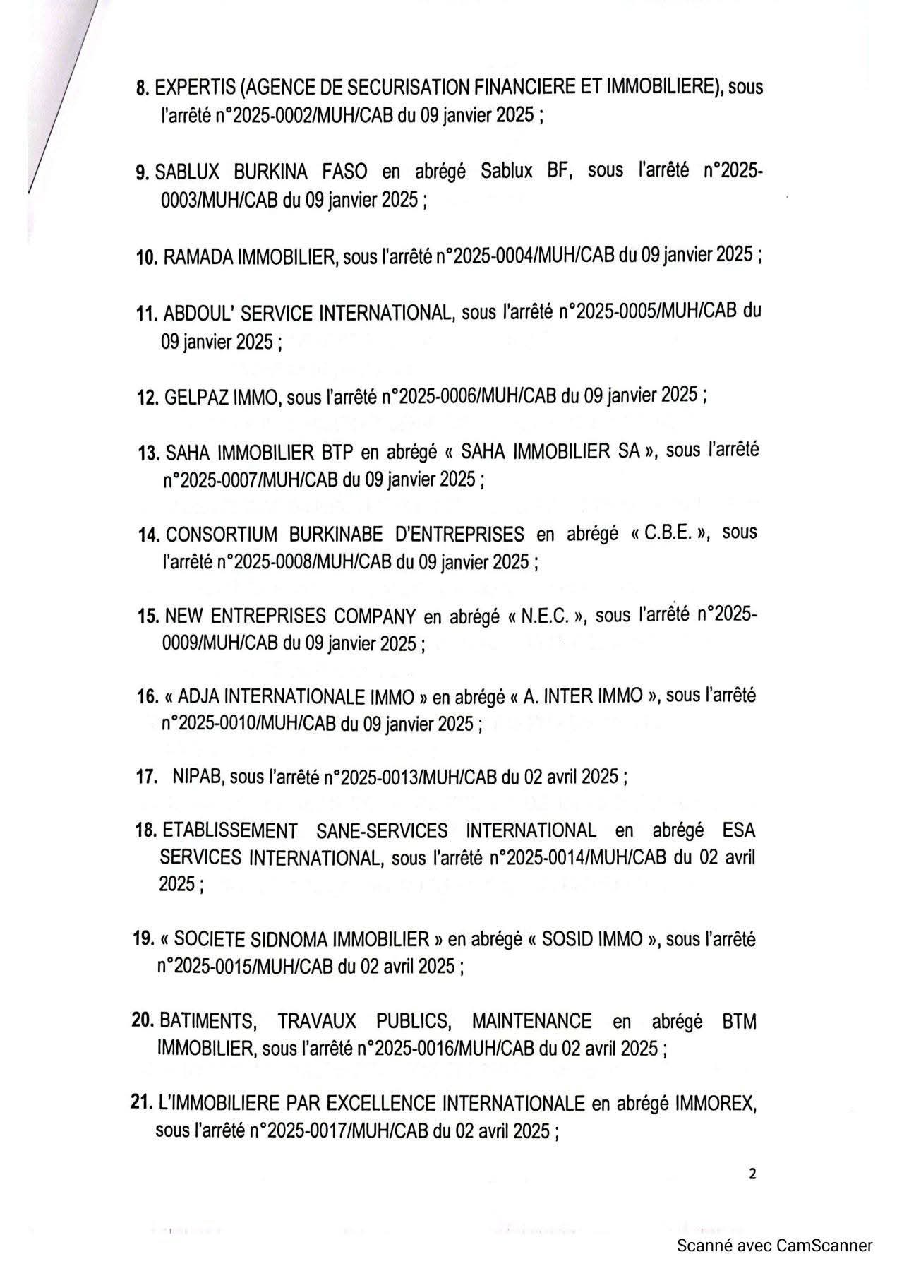 A ce jour, ce sont au total Trente-cinq (35) sociétés qui sont régulièrement agréées pour l’activité de promotion immobilière
