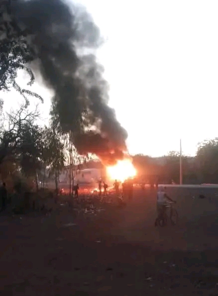 Un minibus de transport en commun, appelé Dîna, en provenance de Bobo-Dioulasso, a pris feu dans la soirée de ce jeudi 5 février 2026 à Kari, en face du CSPS