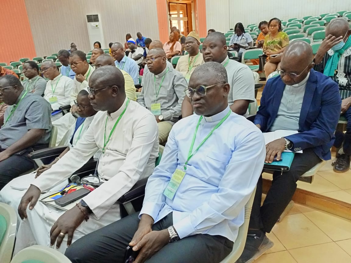 Nous comprenons alors toute la portée de votre Thème. je souhaite qu’au sortir de vos travaux, vous aidiez nos structures educatives catholiques à accroitre leur confiance dans le discernement humain pour préserver la recherche de la vérité, la vie spirituelle et fraternelle et les rêves de votre jeunesse… » Quant au President de l’ARNECAO, il a laissé entendre que les activités de formation chaque année font partie du plan d’action de l’association. il a en outre salué la bonne collaboration qui existe entre l’État et les acteurs de L’ éducation Catholique. il a aussi salué la pertinence du thème de la rencontre qu’il a qualifié de sujet fondamental au regard de l’ évolution rapide de la technologie. C’est pourquoi, il est convaincu qu’ill faut « repenser de Education au regard des differentes mutations. il s’agira au cours des travaux de voir ce que ce c’est que l’intelligence Artificielle, ses implications et comment l’adapter et l’intégrer dans l’ éducation Catholique .