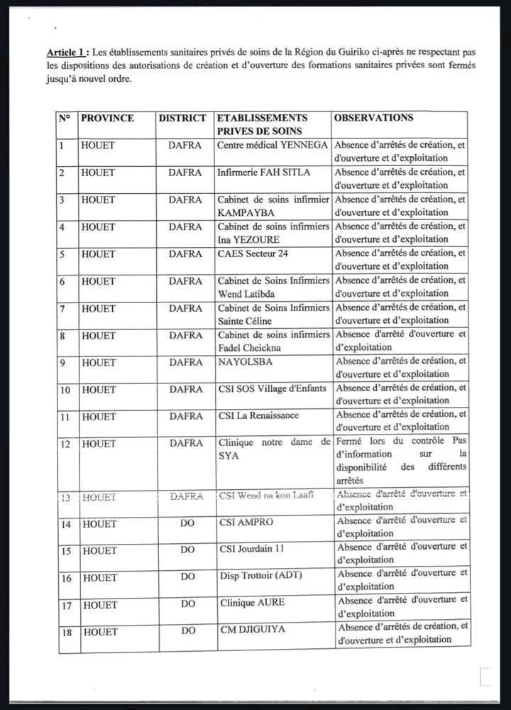 Annonces-Communiqués Santé Région du Guiriko : des établissements sanitaires privés fermés ( la liste ) Réveil info 11 février 2026 Continue Reading Previous Previous post: Afrique : la France tente de renverser les gouvernements qui lui sont défavorables ( Russie)Next Next post: Retour sur le passé -Sénégal : le jour de la mort de Cheikh Anta Diop Laisser un commentaire Annuler la réponseVotre adresse e-mail ne sera pas publiée. Les champs obligatoires sont indiqués avec *Commentaire * Nom * E-mail * Site web Enregistrer mon nom, mon e-mail et mon site dans le navigateur pour mon prochain commentaire. Articles connexes Titre de » Dr honoris causa » : le communiqué du ministère qui dit tout ! 11 février 2026 Annonce-14 février : le rendez-vous à ne pas manquer 11 février 2026