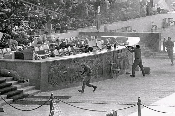 Mardi 6 octobre 1981, Anouar el Sadate assiste à une parade militaire organisée au Caire pour marquer la célébration de la guerre d’octobre 1973. Au passage des avions de combat mirage, un camion de transport de troupes s’arrête devant la tribune présidentielle en simulant une panne. Un lieutenant sort du camion, et se dirige vers le président. Sadate se tient debout pour recevoir son salut. Ce soldat s’appelle Khlalid Islambouli
