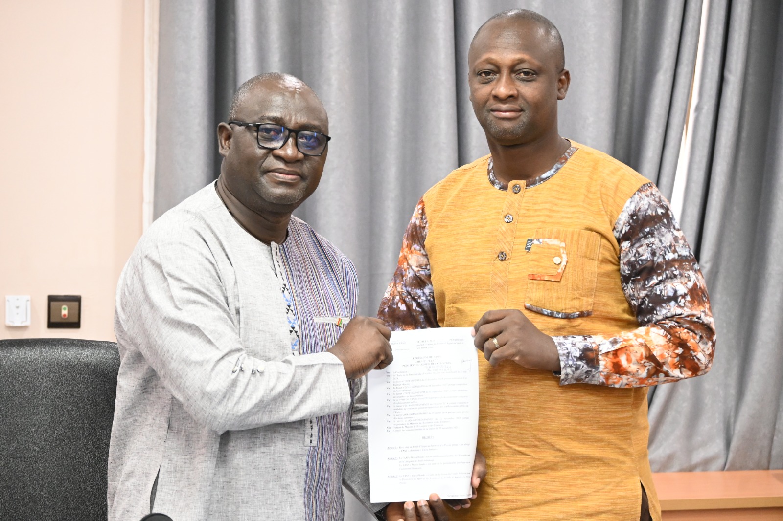 Il a rappelé que la réforme des fonds nationaux engagée par le Gouvernement vise à transformer ces structures en véritables leviers stratégiques de développement sectoriel. Le Fonds « Wassa Bondo » est ainsi appelé à incarner cette ambition et à devenir, conformément à la signification de son nom en langue dioula, un « grenier du succès » au service du sport, de la presse privée et, au-delà, du développement harmonieux du Burkina Faso.