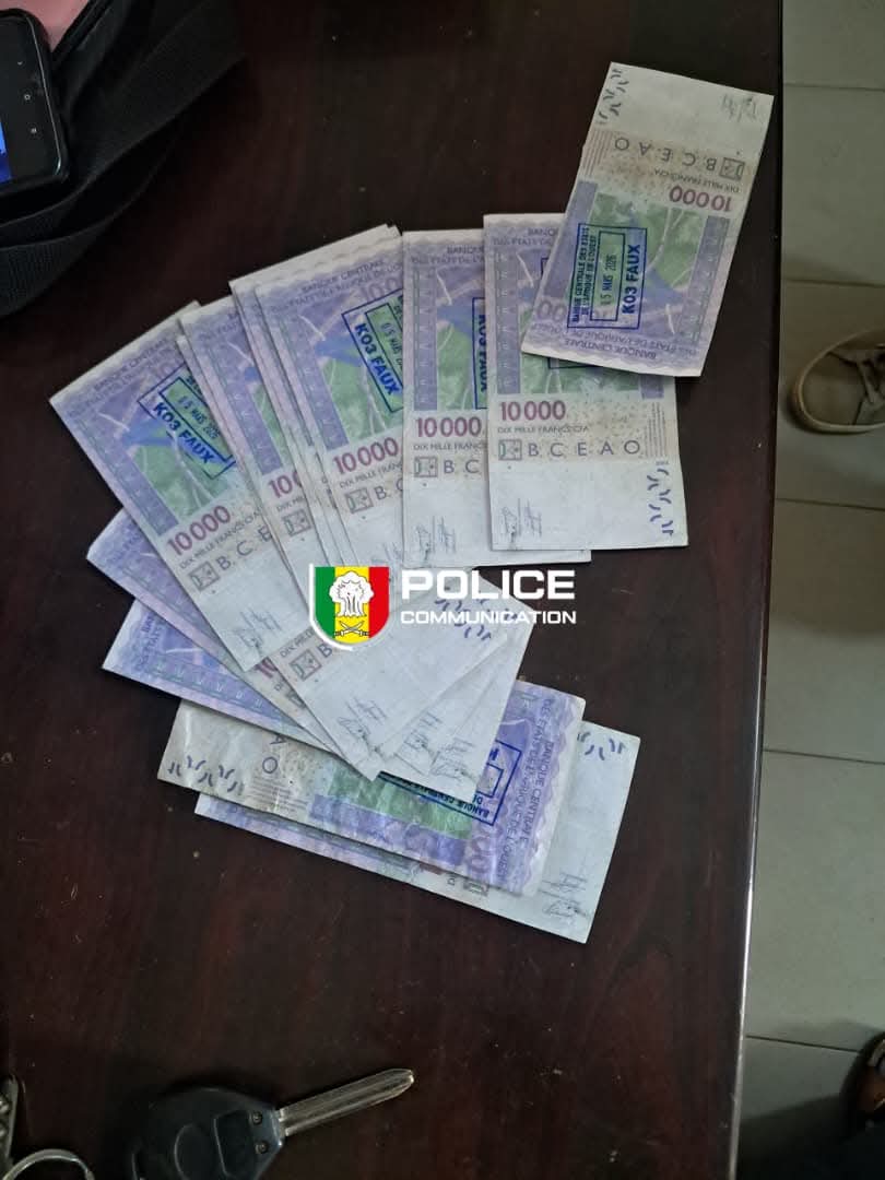Les diligences effectuées par l’agent de police ont permis de faire descendre l’intéressé du bus. La fouille corporelle minutieuse pratiquée sur sa personne a permis de découvrir, dissimulés dans une sacoche, dix-huit (18) autres billets de banque suspects en coupures de dix mille (10 000) FCFA.