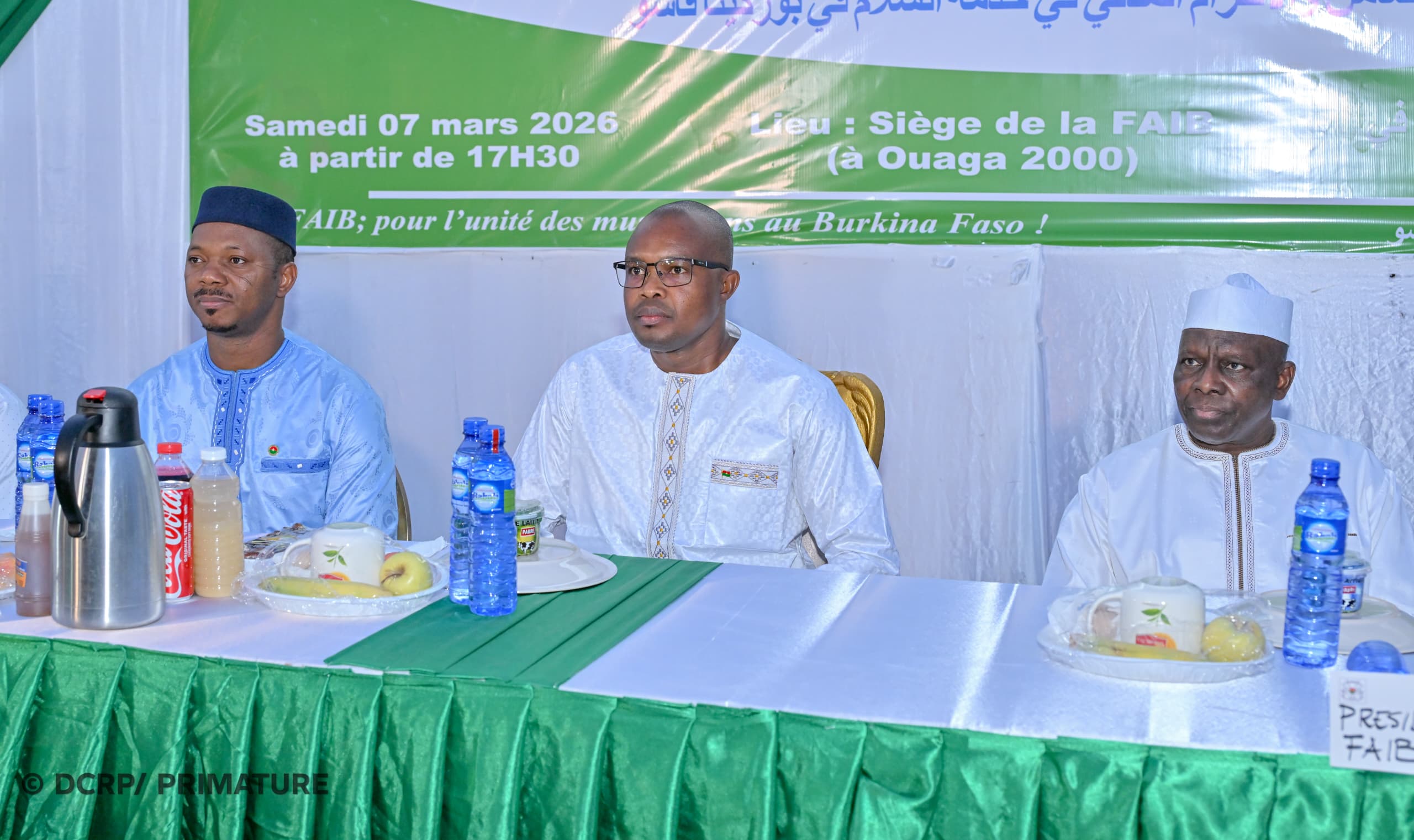 Le Premier ministre Rimtalba Jean Emmanuel Ouédraogo a pris part, ce samedi 7 mars 2026 à Ouagadougou, à la rupture collective du jeûne organisée par la Fédération des Associations Islamiques du Burkina (FAIB).