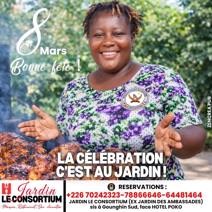 Lieu : Jardin Le Consortium (Ex Jardin des Ambassades) – Gounghin Sud, face Hôtel Poko