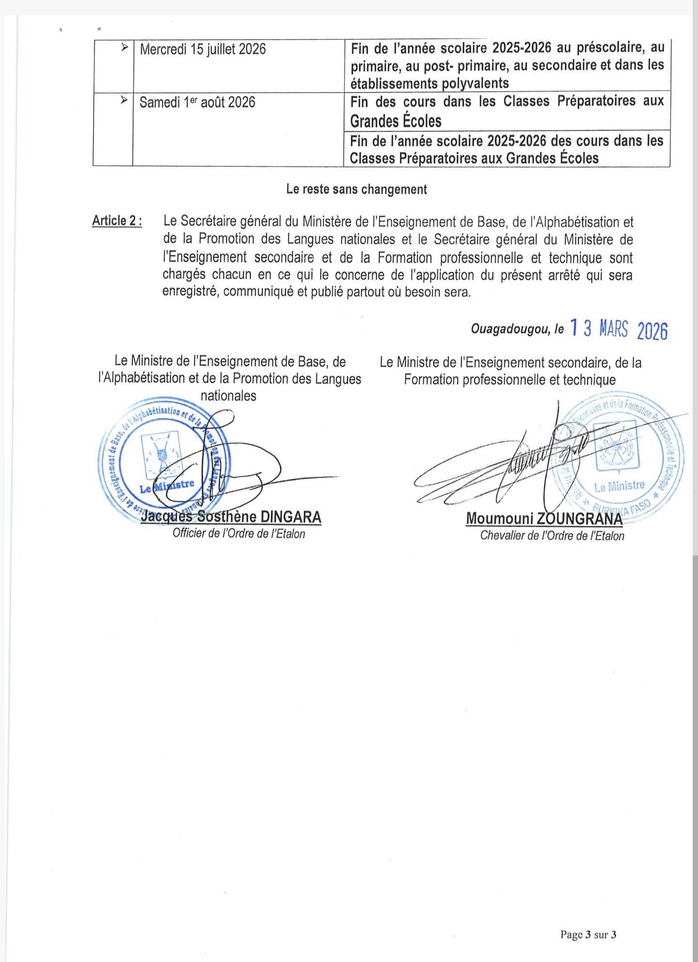 Annonces-Communiqués Burkina : modification du Calendrier scolaire Réveil info 13 mars 2026 Continue Reading Previous Previous post: Faits Divers-Ghana : elle invente la mort de son mari pour récolter des dons à la télévision Laisser un commentaire Annuler la réponseVotre adresse e-mail ne sera pas publiée. Les champs obligatoires sont indiqués avec *Commentaire * Nom * E-mail * Site web Enregistrer mon nom, mon e-mail et mon site dans le navigateur pour mon prochain commentaire. Articles connexes SONABEL : communiqué 12 mars 2026 Les grands dossiers du conseil des ministres du jour 12 mars 2026