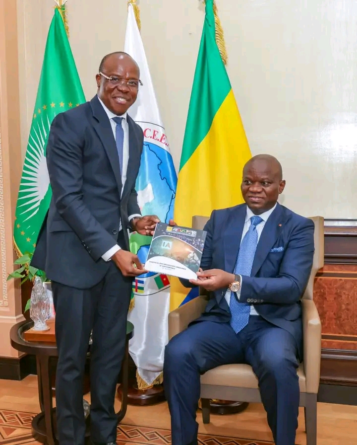« Ce lundi 23 mars, au palais présidentiel à Libreville, avons été reçus en audience par Son Excellence Monsieur le Président de la Republique Gabonaise, Brice-Clotaire Oligui N’Guema, afin de lui remettre officiellement la lettre d’invitation du Gabon en qualité de Pays invité d’honneur de la 18e édition du Festival des Musiques Urbaines d’Anoumabo.