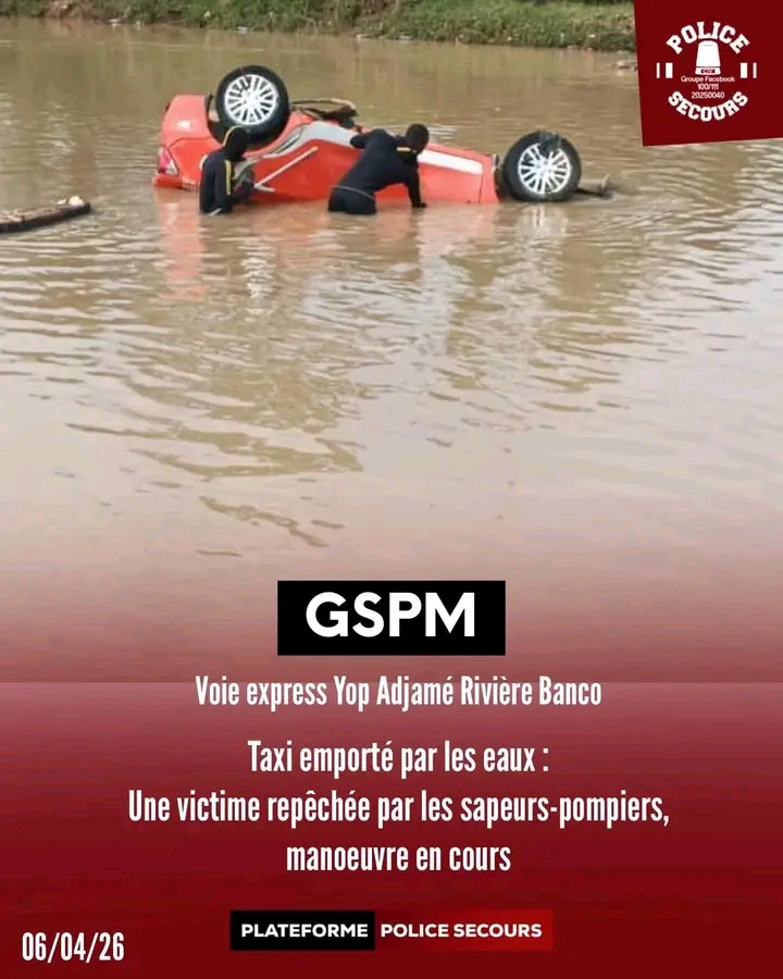 L’alerte avait été donnée dans la nuit d’hier concernant un véhicule tombé dans un ravin sur la voie express Yopougon–Adjamé, à hauteur de la rivière Banco, en face de SI Béton, pendant la pluie.