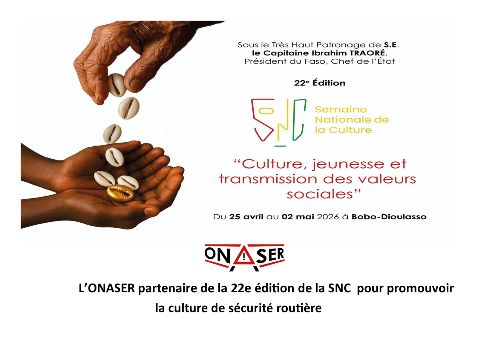 Annonces-Communiqués Société SNC BOBO 2026: l’ONASER partenaire pour la promotion de la culture de sécurité routière Réveil info 17 avril 2026 Rendez vous à la 22e SNC en toute sécurité routière avec l’ONASER. Notre culture nous unit le civisme routier nous protège! Continue Reading Previous Previous post: Nomination en conseil des ministres : Boukary Nitièma, nommé SG de la RTBNext Next post: Région de Yaadga : le premier ministre Rimtalba en visite de travail Laisser un commentaire Annuler la réponseVotre adresse e-mail ne sera pas publiée. Les champs obligatoires sont indiqués avec *Commentaire * Nom * E-mail * Site web Enregistrer mon nom, mon e-mail et mon site dans le navigateur pour mon prochain commentaire. Articles connexes Lutte contre la fraude : saisie d’huile moteur contrefaite estimée à plus de 20 millions de FCFA 17 avril 2026 Créances judiciaires au Burkina : le ministre de la justice invite les débiteurs au payement du »Gombo » de l’état, estimé à plus de 100 milliards de FCFA 17 avril 2026