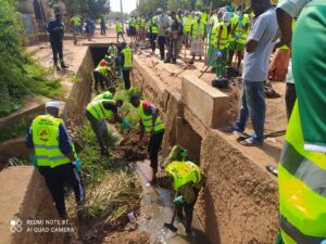 Dans la journée du 3 août 2024, la presidente de la délégation spéciale de l’arrondissement 12 en compagnie de ses populations, ont procédé au curage des caniveaux sur la rue pavée du quartier patte d’oie de la commune de Ouagadougou.