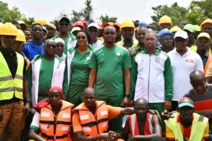 Le ministre d’État, ministre de la communication Jean Emmanuel OUÉDRAOGO, a conduit une délégation gouvernementale ce samedi 10 Août 2024 sur le site du pont de Badara, un village de la commune de Bama, région des Hauts- Bassins, province du Houet. Féliciter et Encourager les techniciens qui ont fait des mains et des pieds pour rétablir le trafic ce samedi.