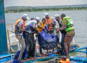 Offensive agropastorale et halieutique : une délégation gouvernementale assite à la première récolte de tilapias produits dans le barrage de Samandéni