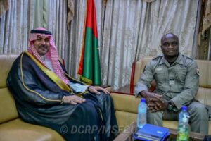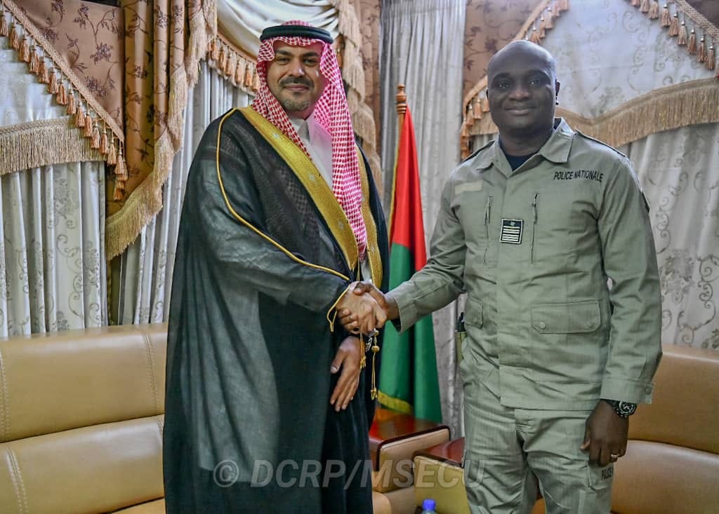 Le Ministre de la Sécurité, le Commissaire divisionnaire de Police Mahamadou SANA, a reçu en audience, le mardi 20 août 2024, à Ouagadougou, l’Ambassadeur du Royaume d’Arabie Saoudite au Burkina Faso, Son Excellence Monsieur Fahad Bin Abdulrahman H. Aldosari.
